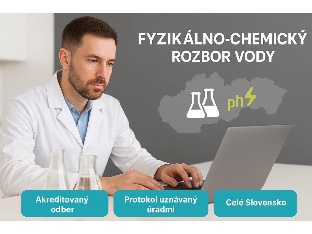 Fyzikálno-chemický rozbor rieši minerály, kovy, anióny, organiku a základné senzorické ukazovatele. Pri podozrení na baktérie (E. coli, koliformné, enterokoky…) zvoľte aj mikrobiologický rozbor alebo kompletný balík podľa účelu využitia vody.